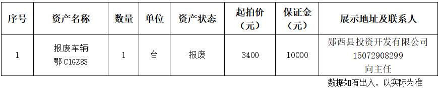 1.湖北省十堰市鄖西縣自然資源和規(guī)劃局報(bào)廢資產(chǎn):