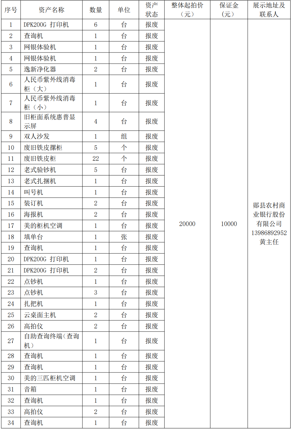 3.湖北鄖縣農(nóng)村商業(yè)銀行股份有限公司報(bào)廢資產(chǎn):