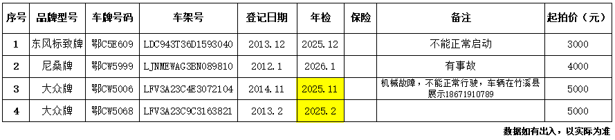 四、特別提醒:拍賣車輛不含車牌號(hào)碼,以現(xiàn)狀拍賣現(xiàn)狀交付。
