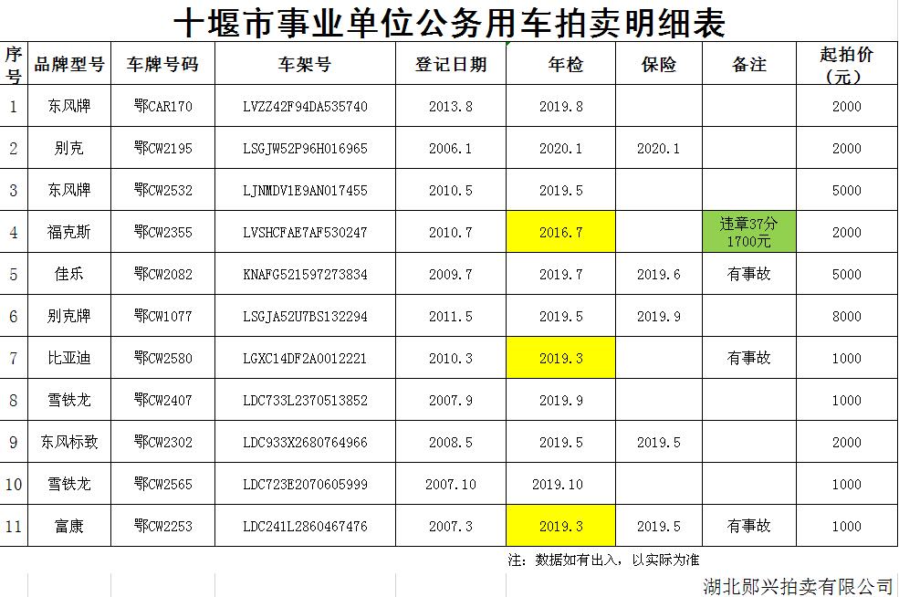 附:十堰市事業(yè)單位公務(wù)用車(chē)拍賣(mài)明細(xì)表